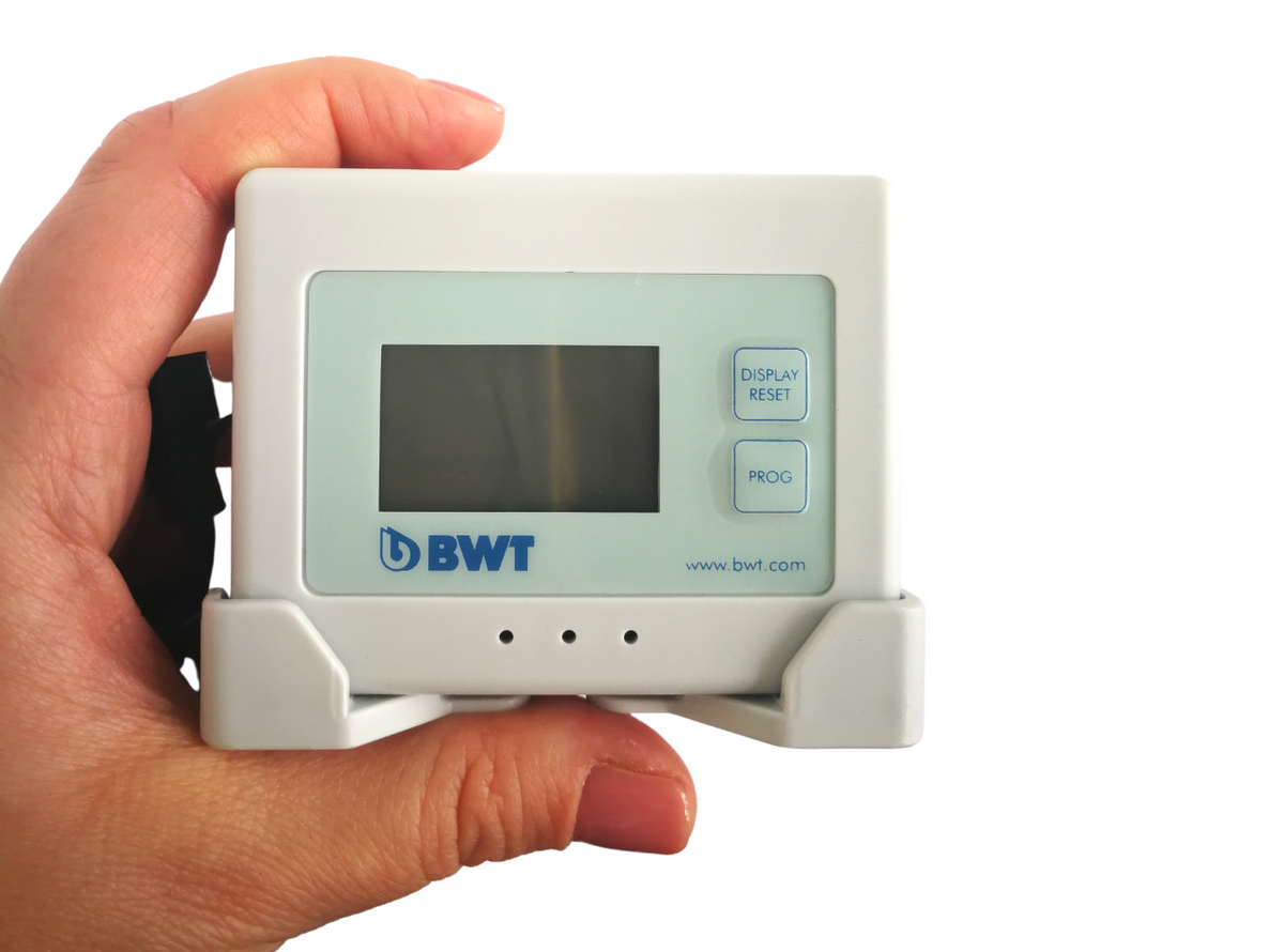 Jednoduché digitální zařízení, které vás upozorní na končící životnost vodního filtru - zvukovým signálem. Lze nastavit buď doba životnosti, nebo počet litrů.