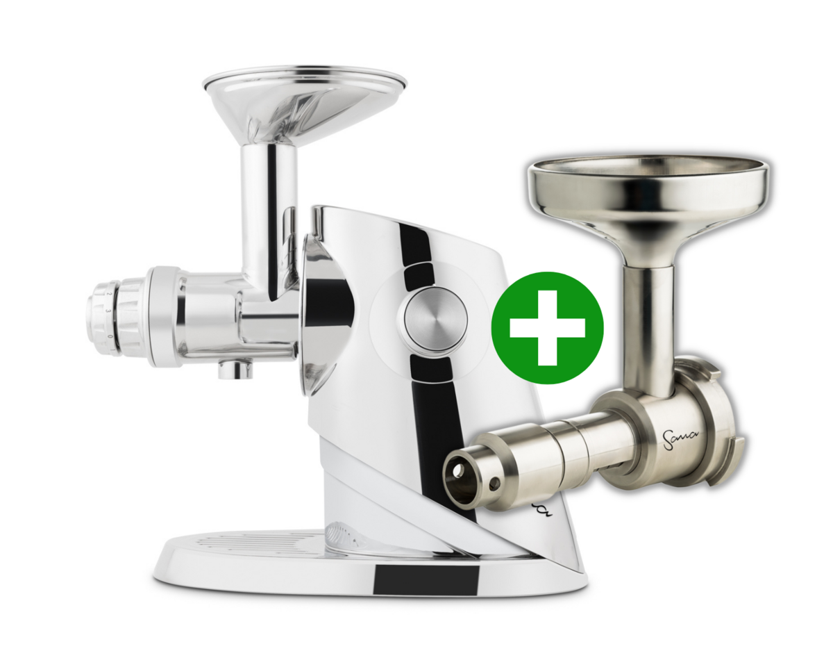 Celonerezový Sana Ultimate 929 s nástavcem pro lisování oleje ve zvýhodněném setu.