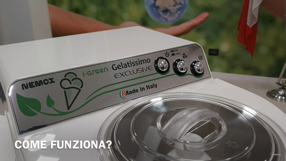 Zmrzlinovač Gelatissimo Exclusive i-Green pro výrobu zmrzliny z kupované i domácí směsi.